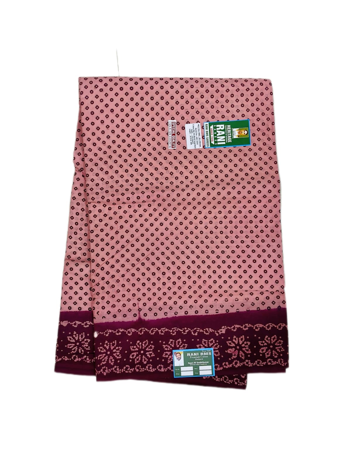7 Yards, Bathic Sarees, Colours, Floral Sarees, Majenta, Maroon, Patterns, Price Range, Rani Superior, Rs.1300 and Above, Sarees, Soft Cotton, Sungudi Collections, Type of Borders, With Blouse (SR), Without Jari (SR)