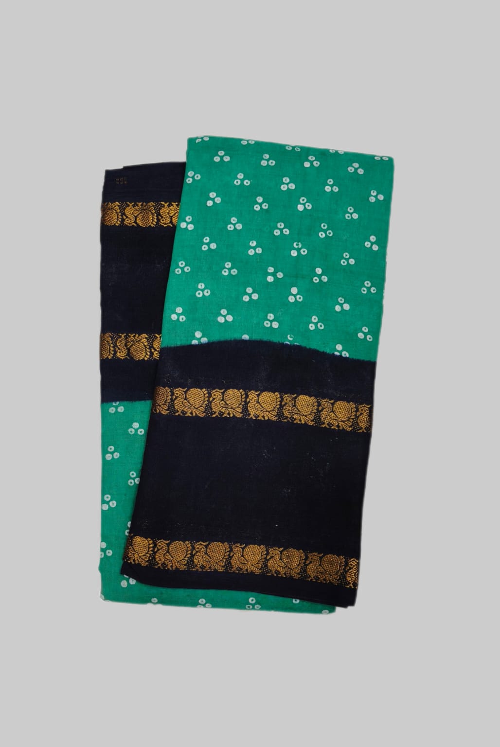 9.50 Yards Sungudi, Colours, Green, Madisar Collections, white, With Jari 8.70 m, Without Jari 8.70 m