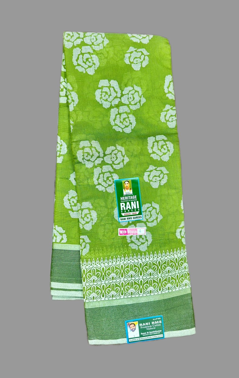 6 Yards, Blue, Colours, Floral Sarees, Green, Patterns, Plain & Tradition Sarees, Price Range, Rani Superior, Rs 1100 to Rs 1300, Sarees, Soft Cotton, Sungudi Collections, Type of Borders, Without Jari (SR)