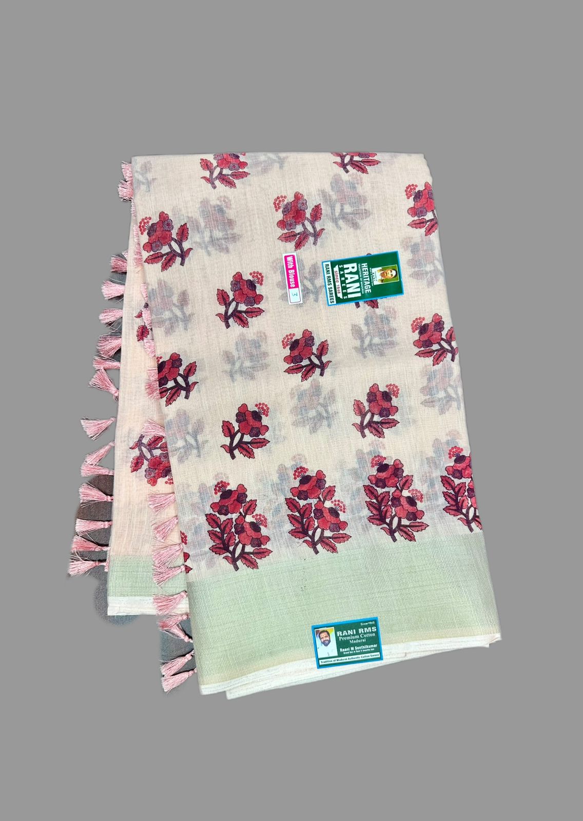 6 Yards, Chettinad, Colours, Double Side Zari, Patterns, Price Range, Rani Premium, Rani Soft Cotton, Rs 950 To Rs 1100, Sarees, Sungudi Collections, Type of Borders, white