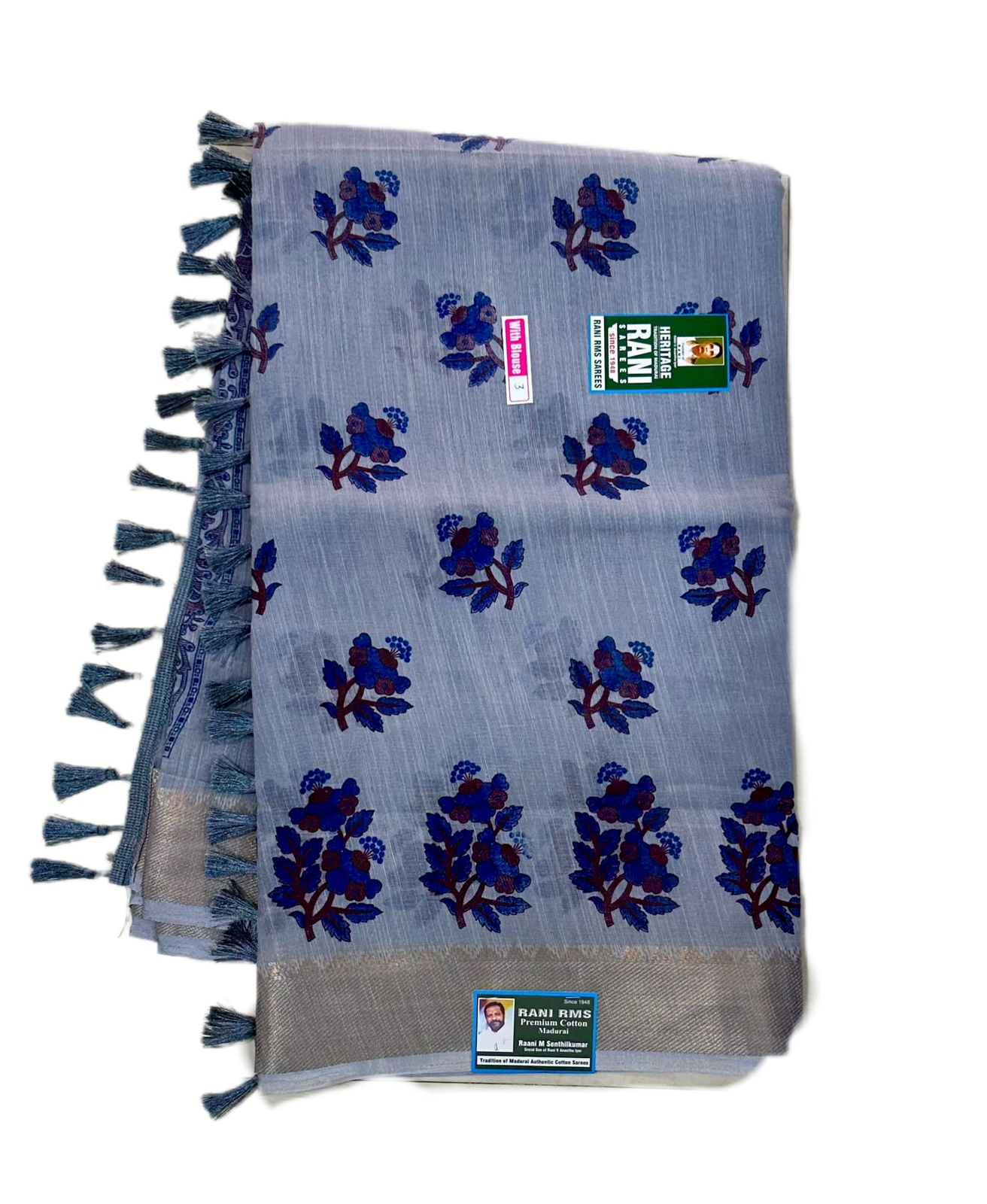 6 Yards, Bathic Sarees, Blue, Colours, Floral Sarees, Offer Sarees, Patterns, Price Range, Rani Premium, Rani Soft Cotton, Rs.650 to Rs.750, Sarees, Soft Cotton, Sungudi Collections, Thread Border, Type of Borders, With Jari Sarees (P)