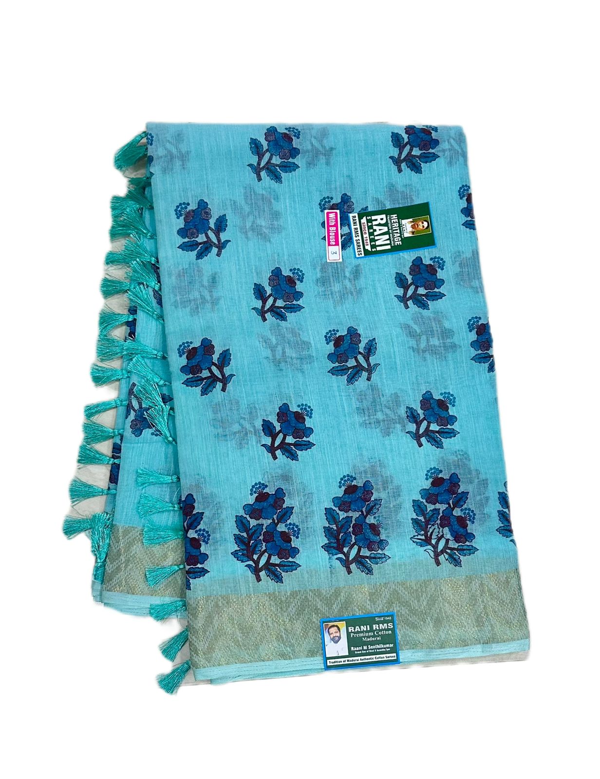 6 Yards, Bathic Sarees, Blue, Colours, Floral Sarees, Offer Sarees, Patterns, Price Range, Rani Premium, Rani Soft Cotton, Rs.650 to Rs.750, Sarees, Soft Cotton, Sungudi Collections, Thread Border, Type of Borders, With Jari Sarees (P)