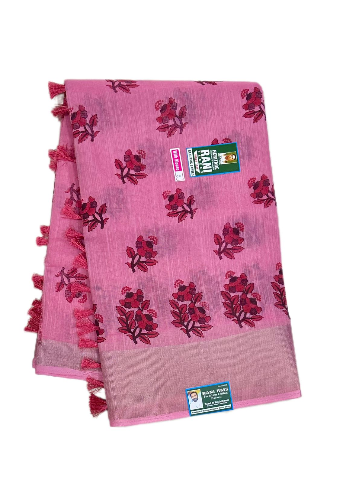 7 Yards, Bathic Sarees, Colours, Floral Sarees, Patterns, Pink, Price Range, Rani Superior, Rs.1300 and Above, Sarees, Soft Cotton, Sungudi Collections, Type of Borders, With Blouse (SR), Without Jari (SR)