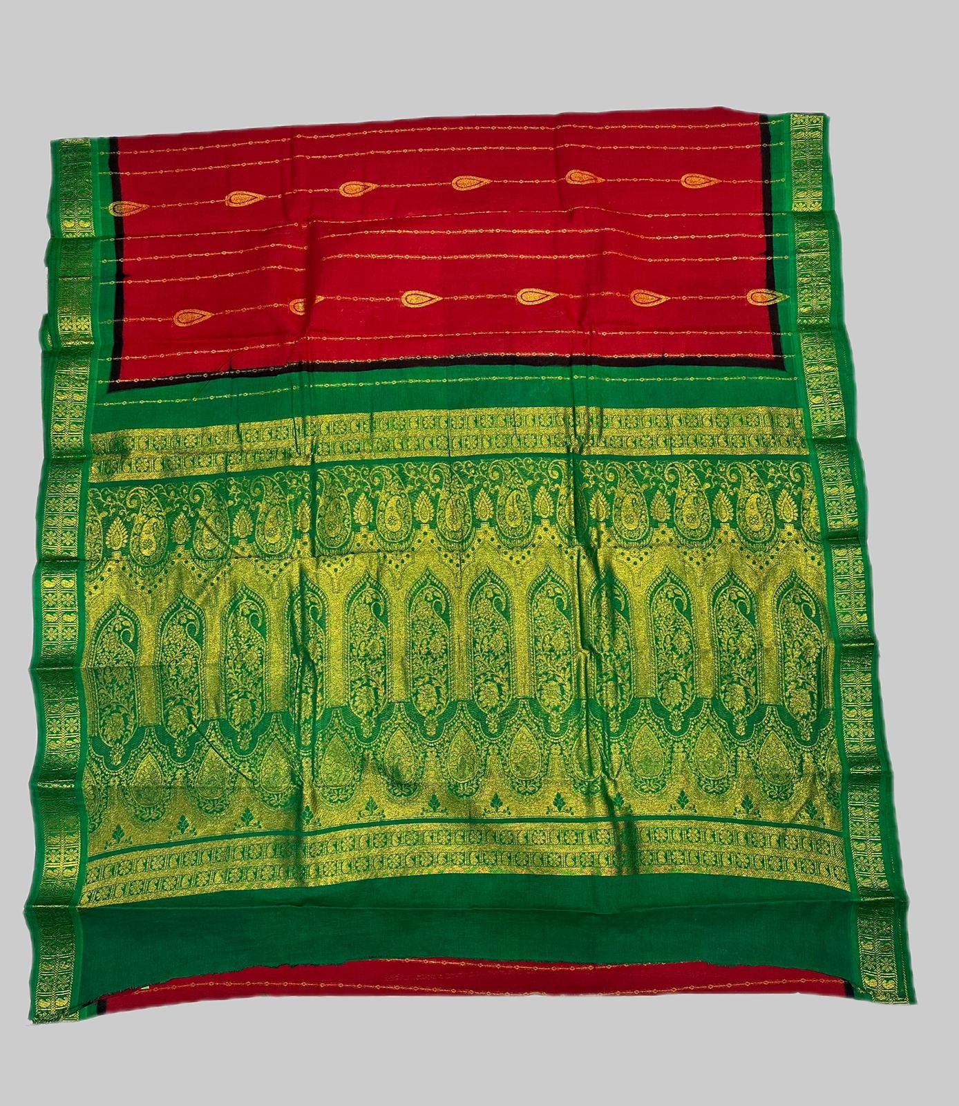 9.50 Yards Sungudi, Colours, Green, Madisar Collections, With Jari 8.70 m, Without Jari 8.70 m, Yellow