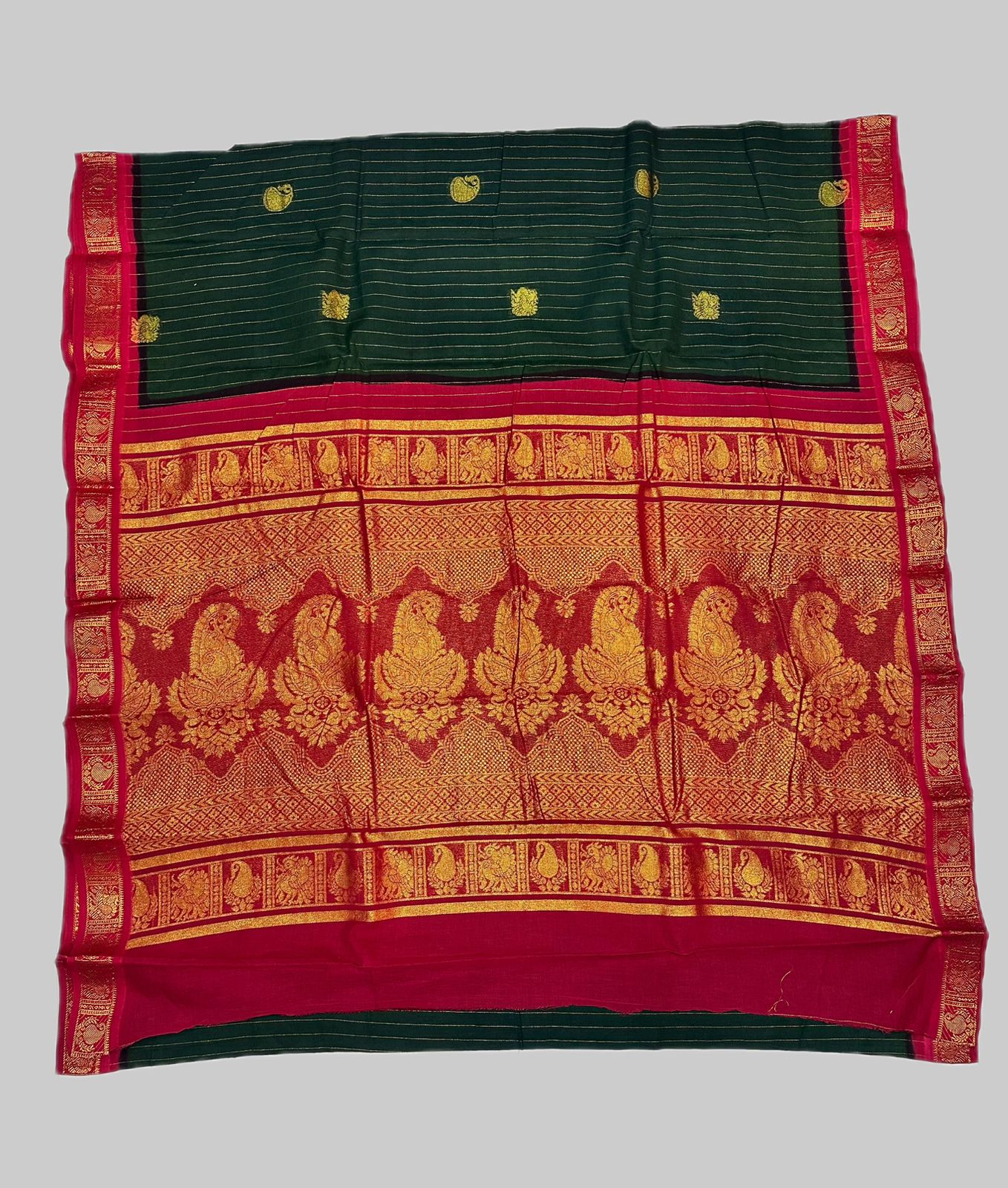9.50 Yards Sungudi, Colours, Green, Madisar Collections, white, With Jari 8.70 m, Without Jari 8.70 m
