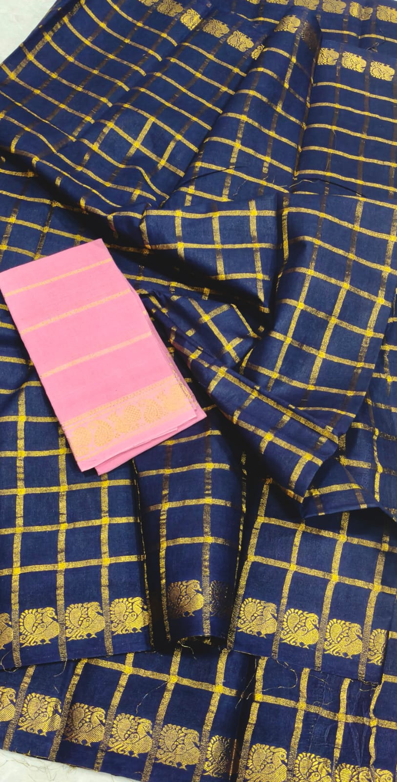 6 Yards, Colours, Double Side Zari, Long Zari Border, Navy Blue, Patterns, Price Range, Rani Superior, Rose, Rs.1300 and Above, Sungudi Collections, Type of Borders, With Jari (SR), Zari Checks & Zari Veldhari