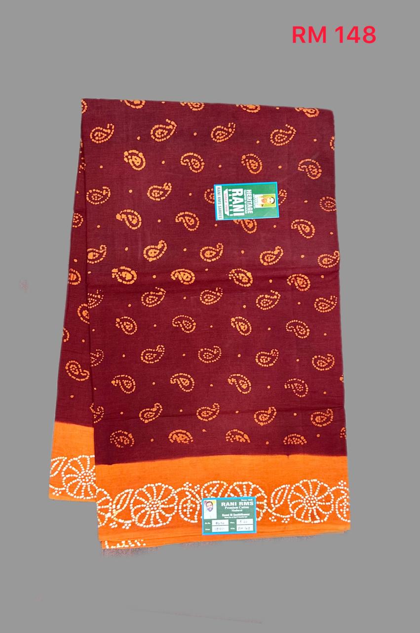 Categories: 6 Yards, Bathic Sarees, Colours, Double Side Zari, Maroon, Offer Sarees, Orange, Patterns, Price Range, Rani Superior, Rs 950 To Rs 1100, Sungudi Collections, Type of Borders, Without Jari (SR)