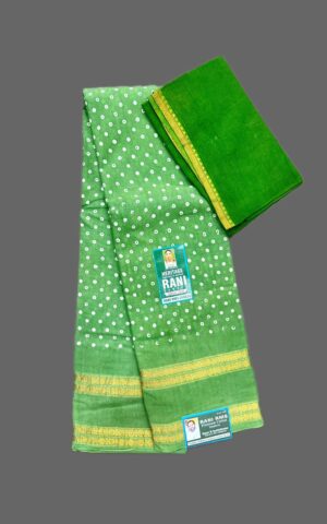 6 Yards, Colours, Double Side Zari, Green, Patterns, Plain & Tradition Sarees, Price Range, Rani Premium, Rs.1300 and Above, Sungudi Collections, Type of Borders, With Blouse (P), With Jari Sarees (P)