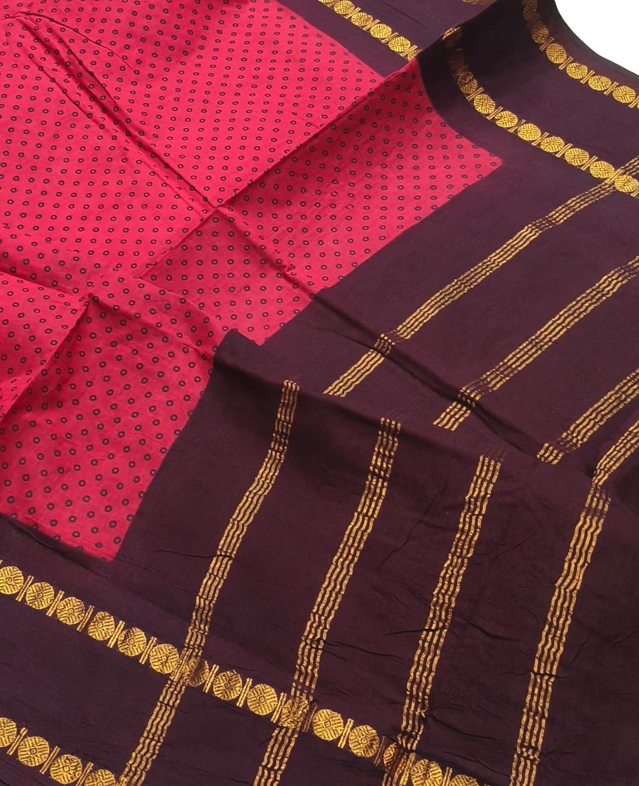 9.50 Yards Sungudi, Colours, Madisar Collections, Maroon, Rose, With Jari 8.70 m, Without Jari 8.70 m