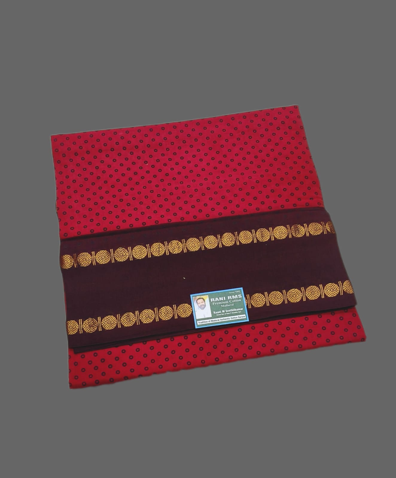 Categories: 7 Yards, Colours, Double Side Zari, Maroon, Patterns, Plain & Tradition Sarees, Price Range, Rani Superior, Red, Rs.1300 and Above, Sungudi Collections, Type of Borders, With Blouse (SR), With Jari (SR)