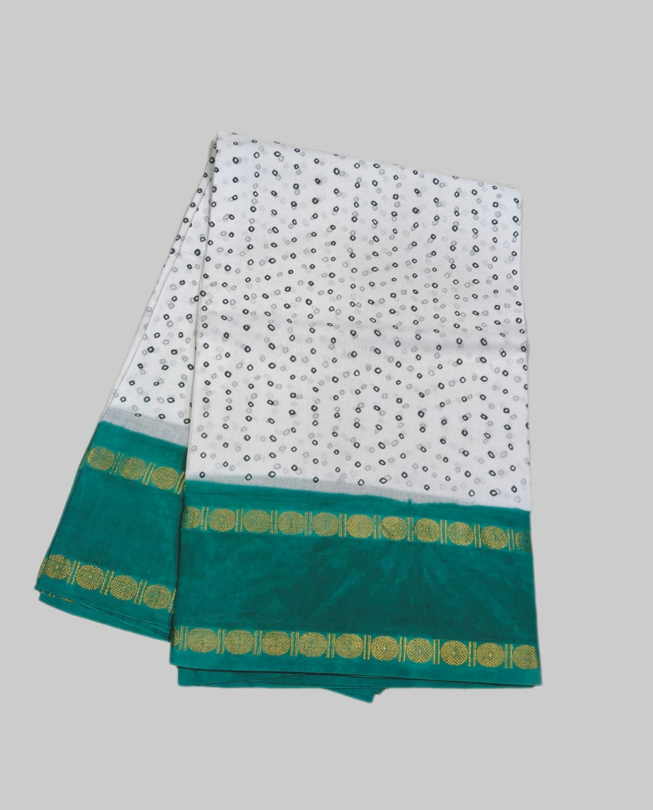 9.50 Yards Sungudi, Colours, Green, Madisar Collections, white, With Jari 8.70 m, Without Jari 8.70 m