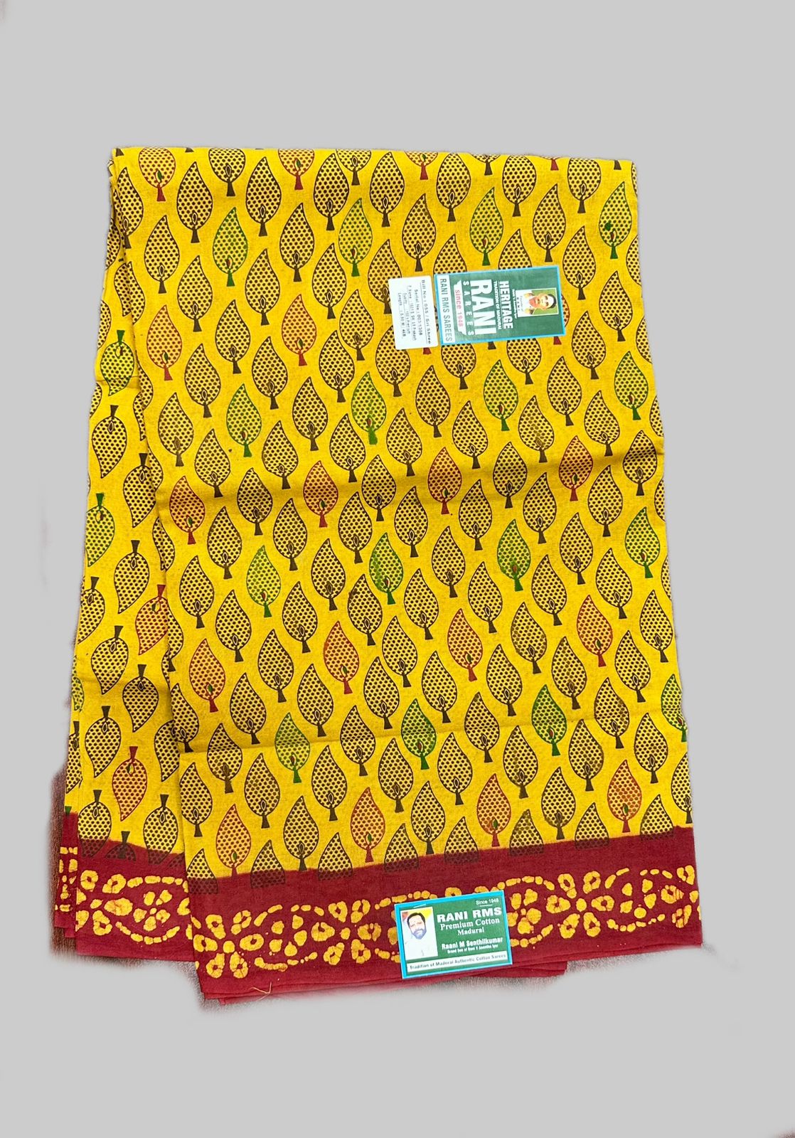 Categories: 6 Yards, Colours, Floral Sarees, Mustard, Offer Sarees, Patterns, Price Range, Rani Premium, Red, Rs 950 To Rs 1100, Sungudi Collections, Type of Borders, Without Jari (P)
