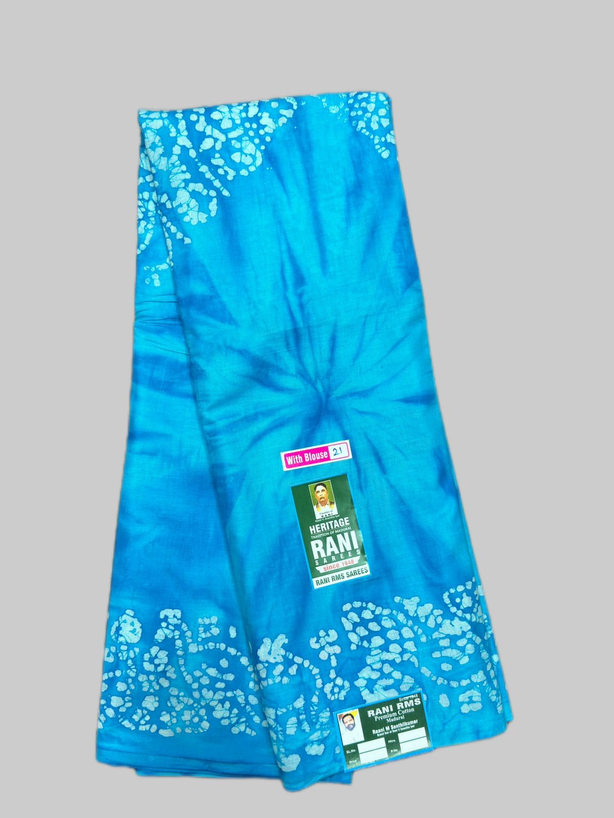 Categories: 6 Yards, Bathic Sarees, Blue, Colours, Patterns, Price Range, Rani Premium, Rani Soft Cotton, Rs 1100 to Rs 1300, Sungudi Collections, With Blouse (P), Without Jari (P)