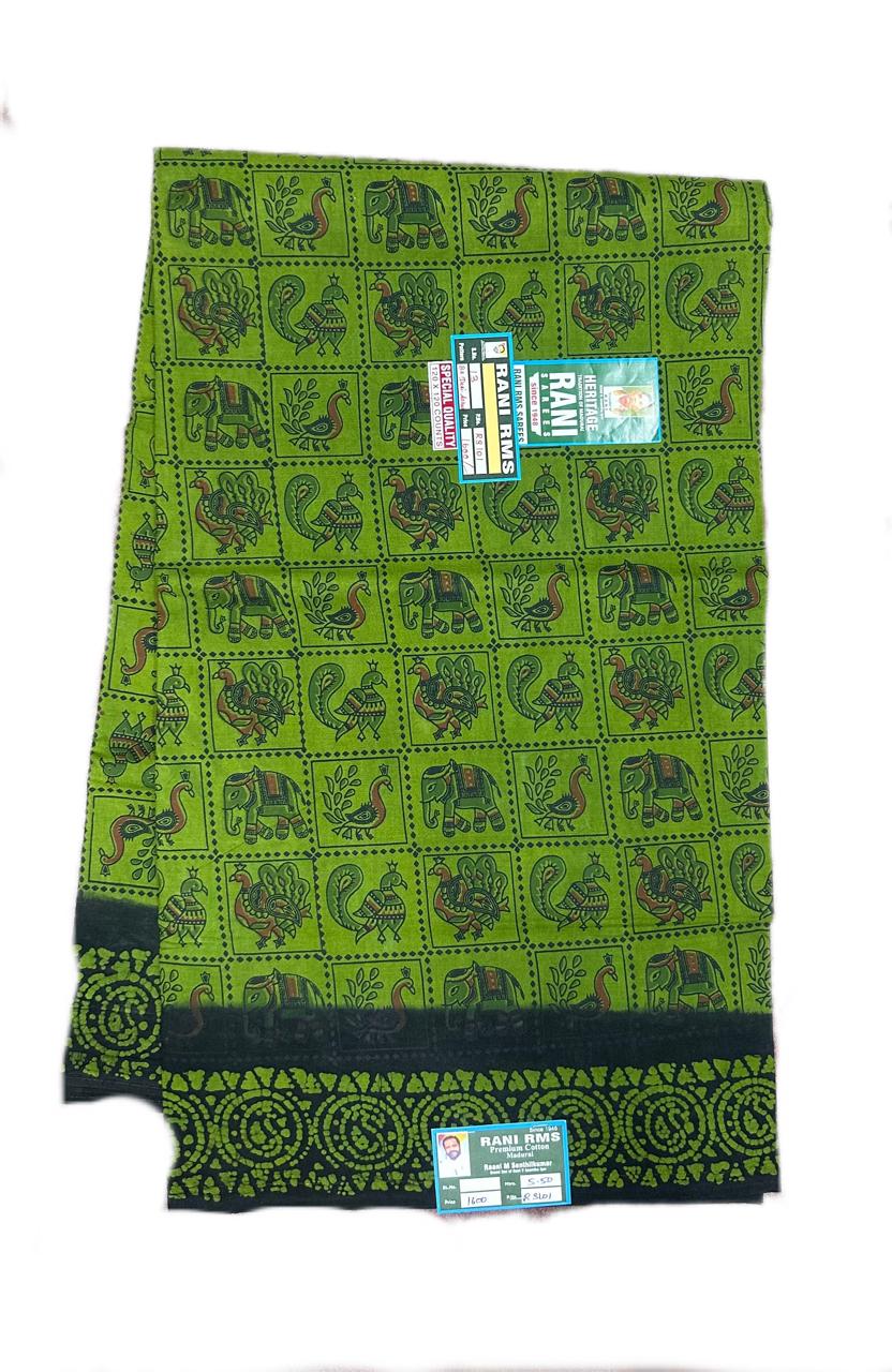 6 Yards, Colours, Floral Sarees, Green, Patterns, Price Range, Rani Premium, Rs 1100 to Rs 1300, Sarees, Soft Cotton, Sungudi Collections, Type of Borders, Without Jari (P), Without-Jari (S)
