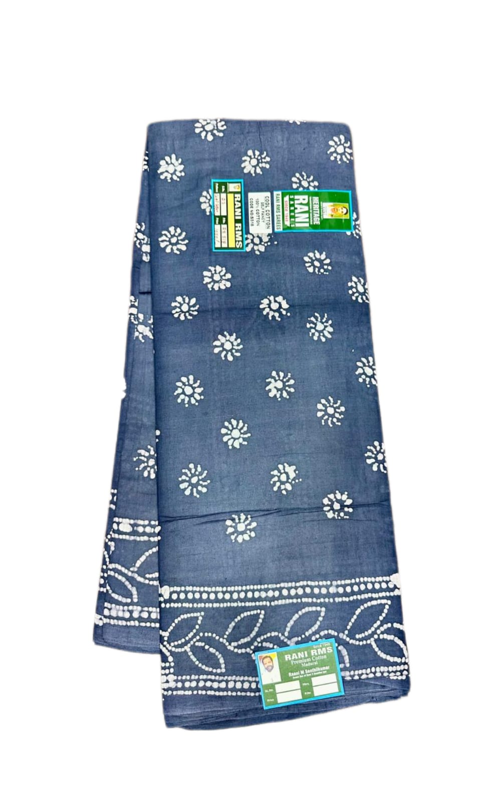 6 Yards, Floral Sarees, Navy Blue, Offer Sarees, Rani Superior, Rs 1100 to Rs 1300, Sarees, Soft Cotton, Sungudi Collections, Without Jari (SR), Without-Jari (S)