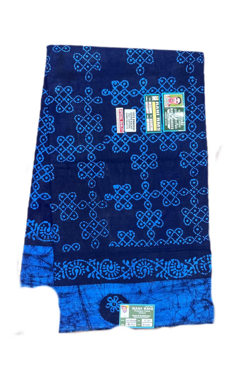 Categories: 6 Yards, Bathic Sarees, Blue, Colours, Floral Sarees, Navy Blue, Patterns, Price Range, Rani Superior, Rs.1300 and Above, Sarees, Soft Cotton, Sungudi Collections, Type of Borders, Without Jari (SR)