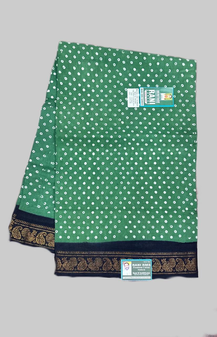 7 Yards, Colours, Double Side Zari, Green, Patterns, Plain & Tradition Sarees, Price Range, Rani Superior, Rs.1300 and Above, Sarees, Sungudi Collections, Type of Borders, With Blouse (SR), With Jari (SR)