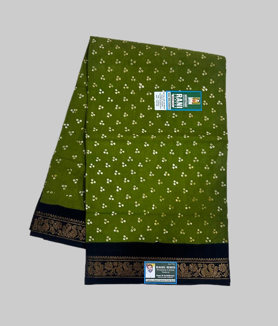7 Yards, Colours, Floral Sarees, Green, Patterns, Price Range, Rani Premium, Rs.1300 and Above, Small Zari, Sungudi Collections, Type of Borders, With Blouse (P), With Jari Sarees (P)