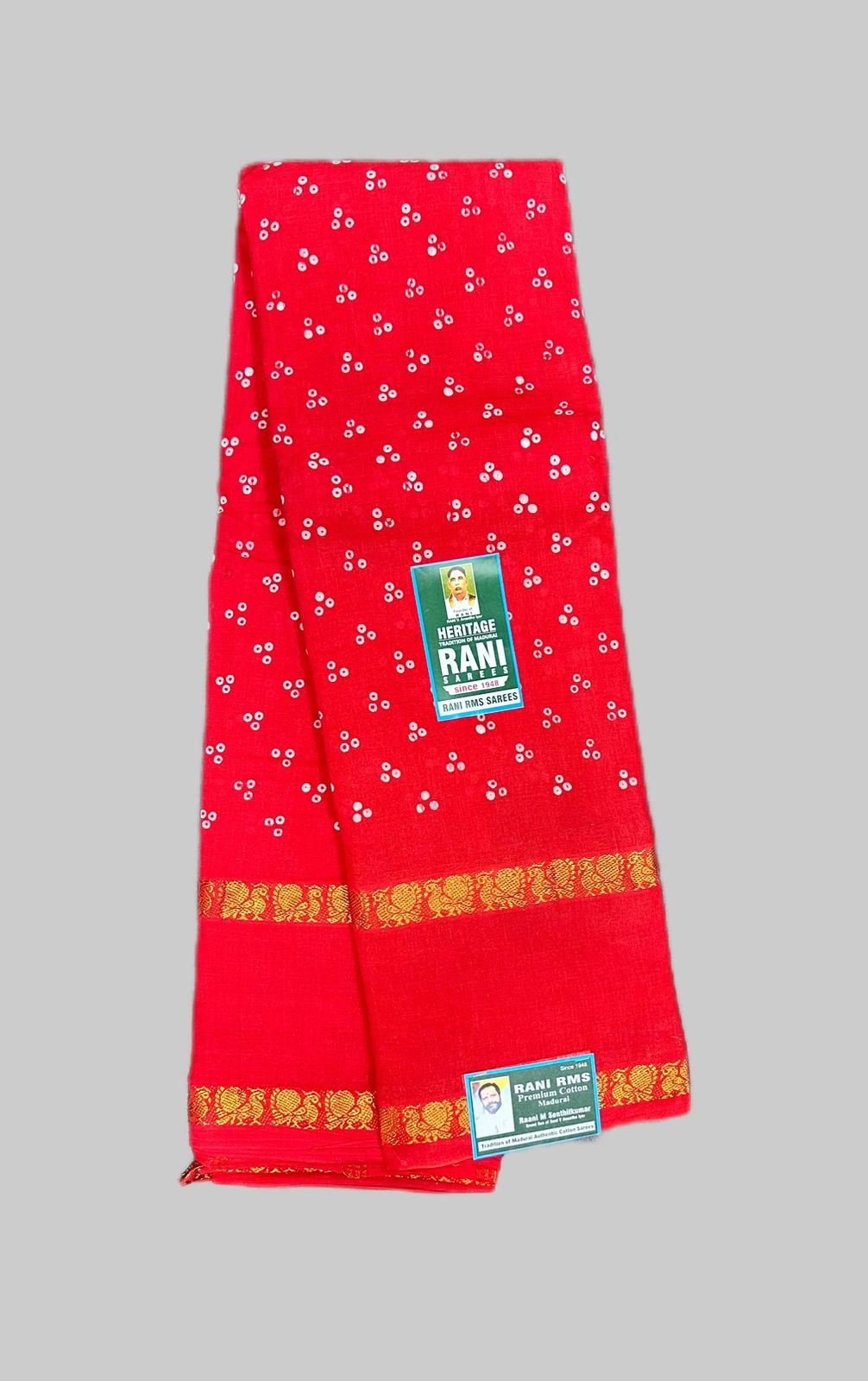 Categories: 7 Yards, Colours, Double Side Zari, Orange, Patterns, Plain & Tradition Sarees, Price Range, Rani Superior, Rs.1300 and Above, Sungudi Collections, Type of Borders, With Blouse (SR), With Jari (SR)