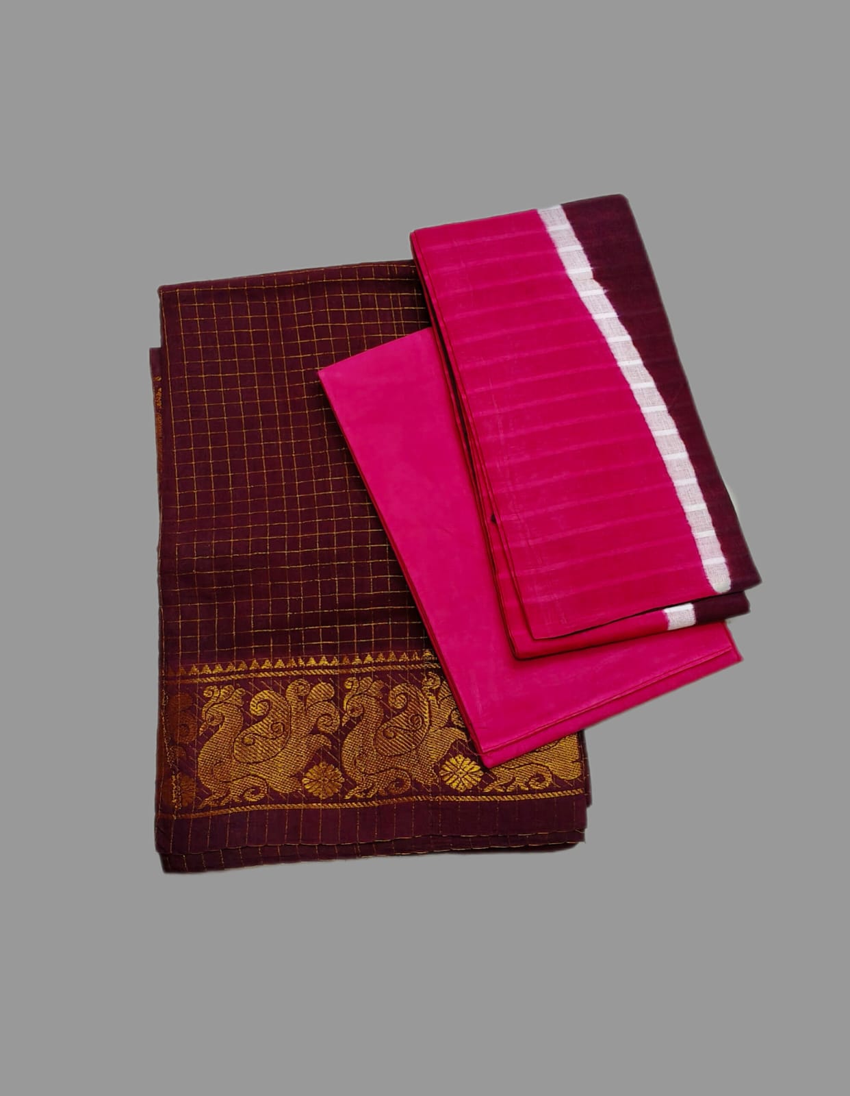 9.50 Yards Sungudi, Colours, Madisar Collections, Maroon, Rose, With Jari 8.70 m, Without Jari 8.70 m