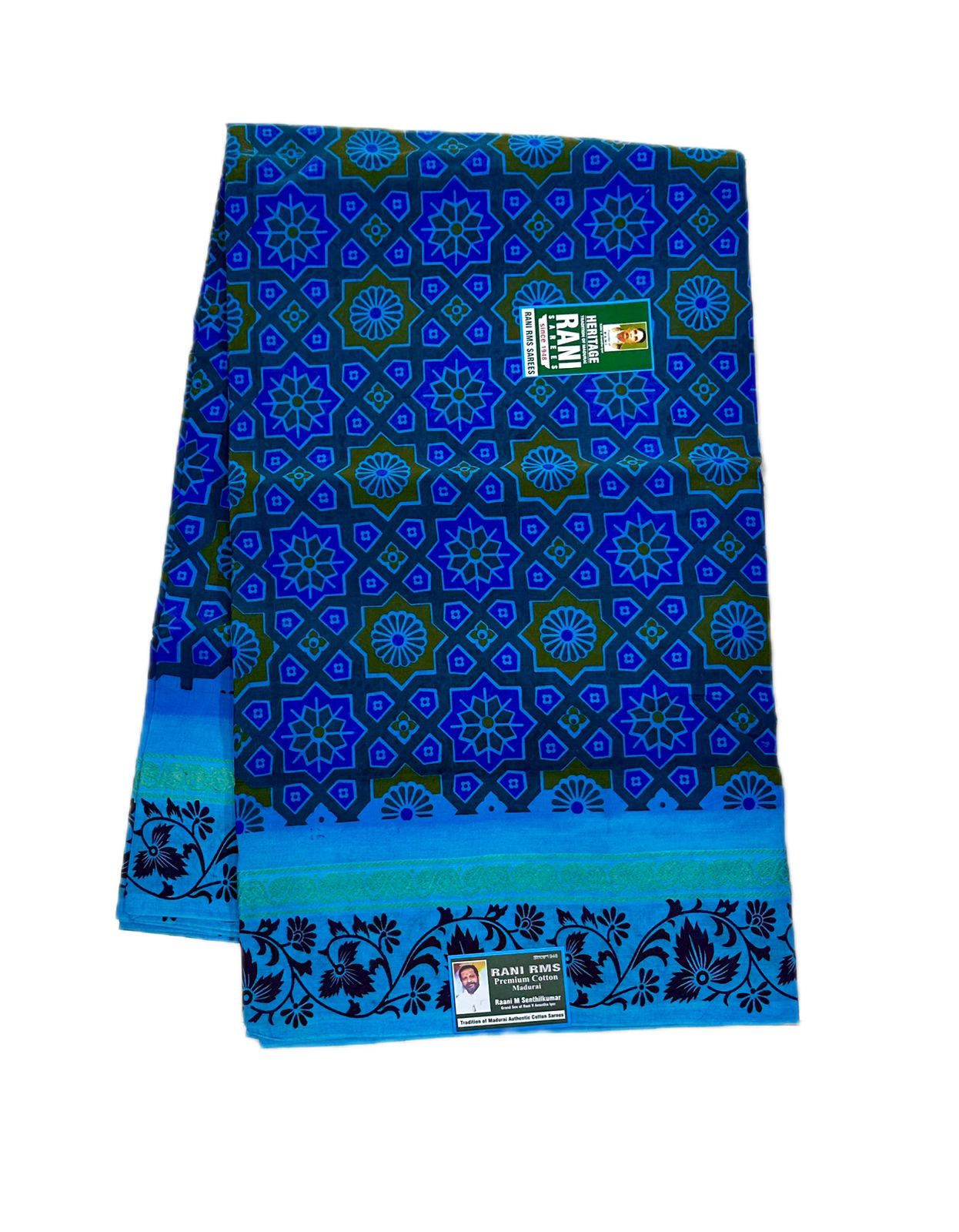 7 Yards, Blue, Colours, Floral Sarees, Patterns, Price Range, Rani Premium, Rs.1300 and Above, Small Zari, Sungudi Collections, Type of Borders, With Blouse (P), With Jari Sarees (P)