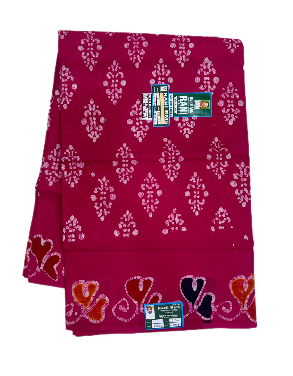 Categories: 7 Yards, Bathic Sarees, Colours, Floral Sarees, Patterns, Pink, Price Range, Rani Superior, Rs.1300 and Above, Sarees, Soft Cotton, Sungudi Collections, Type of Borders, With Blouse (SR), Without Jari (SR)