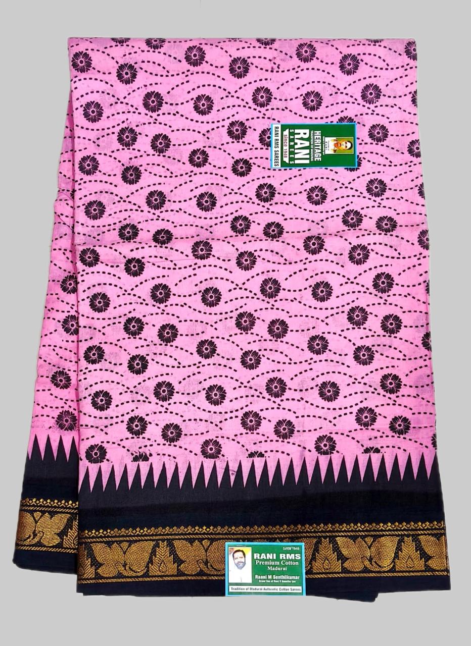 6 Yards, Blue, Colours, Floral Sarees, Patterns, Pink, Price Range, Rani Superior, Rs 1100 to Rs 1300, Sarees, Soft Cotton, Sungudi Collections, Type of Borders, Without Jari (SR), Without-Jari (S)