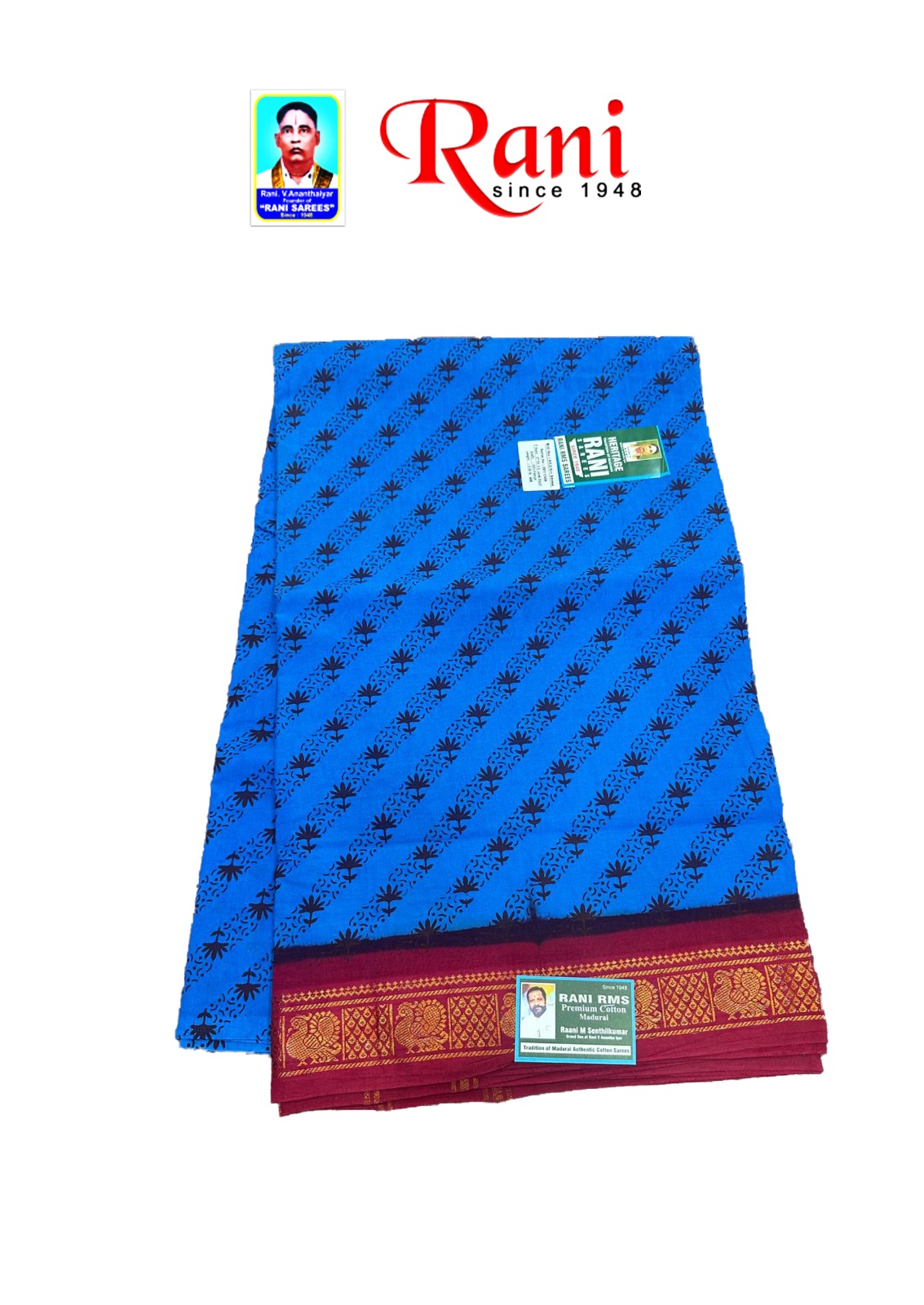 6 Yards, Blue, Colours, Floral Sarees, One Side Zari, Patterns, Price Range, Rani Premium, Rs 1100 to Rs 1300, Sungudi Collections, Type of Borders, With Jari Sarees (P)