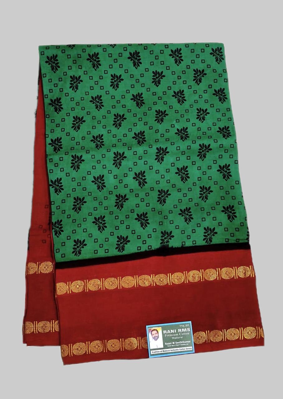 6 Yards, Colours, Floral Sarees, One Side Zari, Patterns, Price Range, Rama Green, Rani Premium, Rs 1100 to Rs 1300, Sungudi Collections, Type of Borders, With Jari Sarees (P)