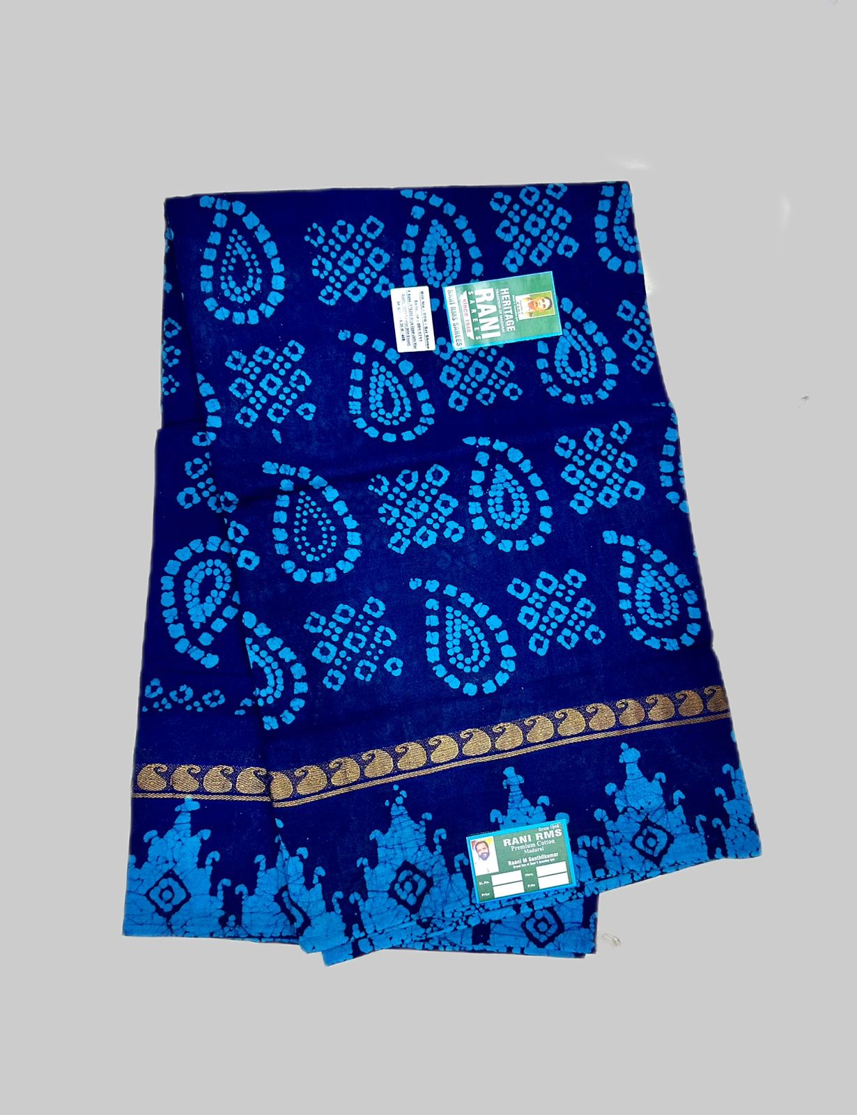 6 Yards, Blue, Colours, Floral Sarees, One Side Zari, Patterns, Price Range, Rani Superior, Rs 1100 to Rs 1300, Sungudi Collections, Type of Borders, With Jari Sarees (P)