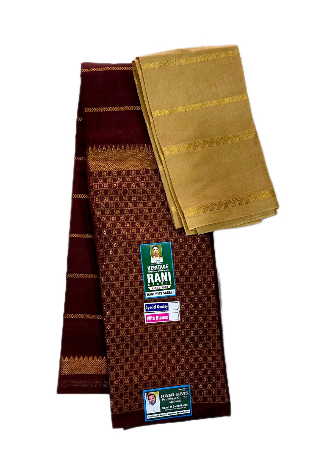 Categories: 6 Yards, brown, Double Side Zari, Patterns, Plain & Tradition Sarees, Price Range, Rani Superior, Rs 1100 to Rs 1300, sandal, Sarees, Soft Cotton, Sungudi Collections, Type of Borders, With Blouse (SR), With Jari (SR), Zari Checks & Zari Veldhari
