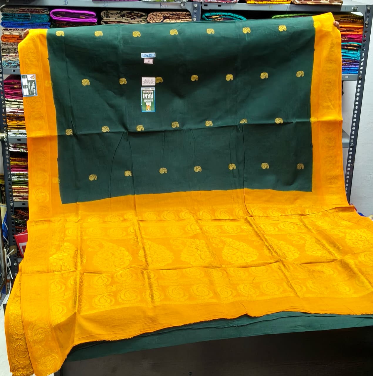 Categories: 7 Yards, Colours, Double Side Zari, Green, Patterns, Plain & Tradition Sarees, Price Range, Rani Superior, Rs.1300 and Above, Sarees, Sungudi Collections, Type of Borders, With Blouse (SR), With Jari (SR)