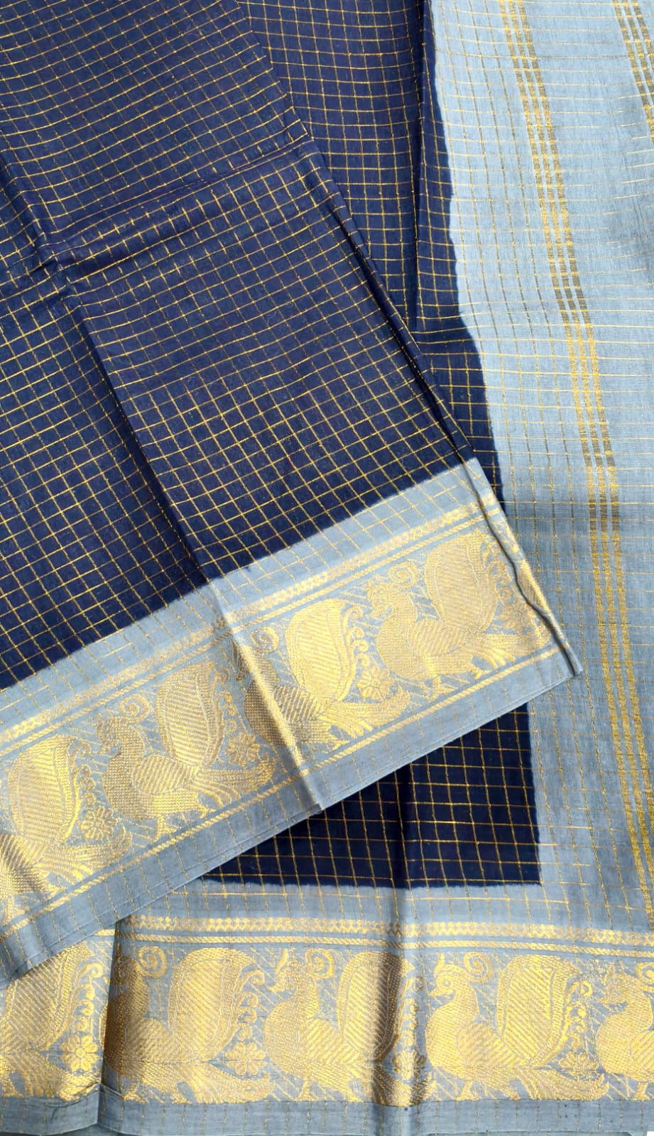 Categories: 6 Yards, Colours, Double Side Zari, Grey, Navy Blue, Price Range, Rani Superior, Rs 1100 to Rs 1300, Sungudi Collections, Type of Borders, With Jari (SR), Zari Checks & Zari Veldhari