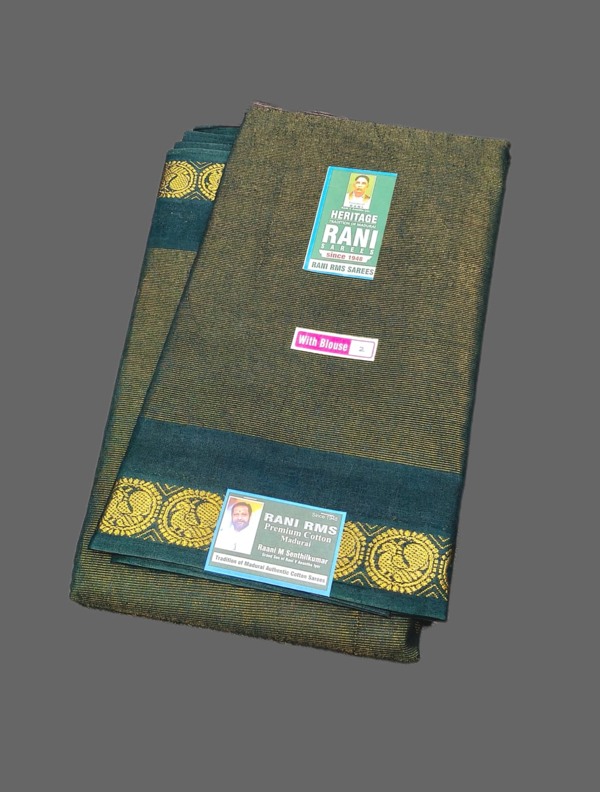 6 Yards, Black, Colours, Double Side Zari, Green, Patterns, Plain & Tradition Sarees, Poly Cotton, Price Range, Rani Premium, Rani Soft Cotton, Rs.850-Rs.950, Sarees, Sungudi Collections, Type of Borders, With Jari Sarees (P)